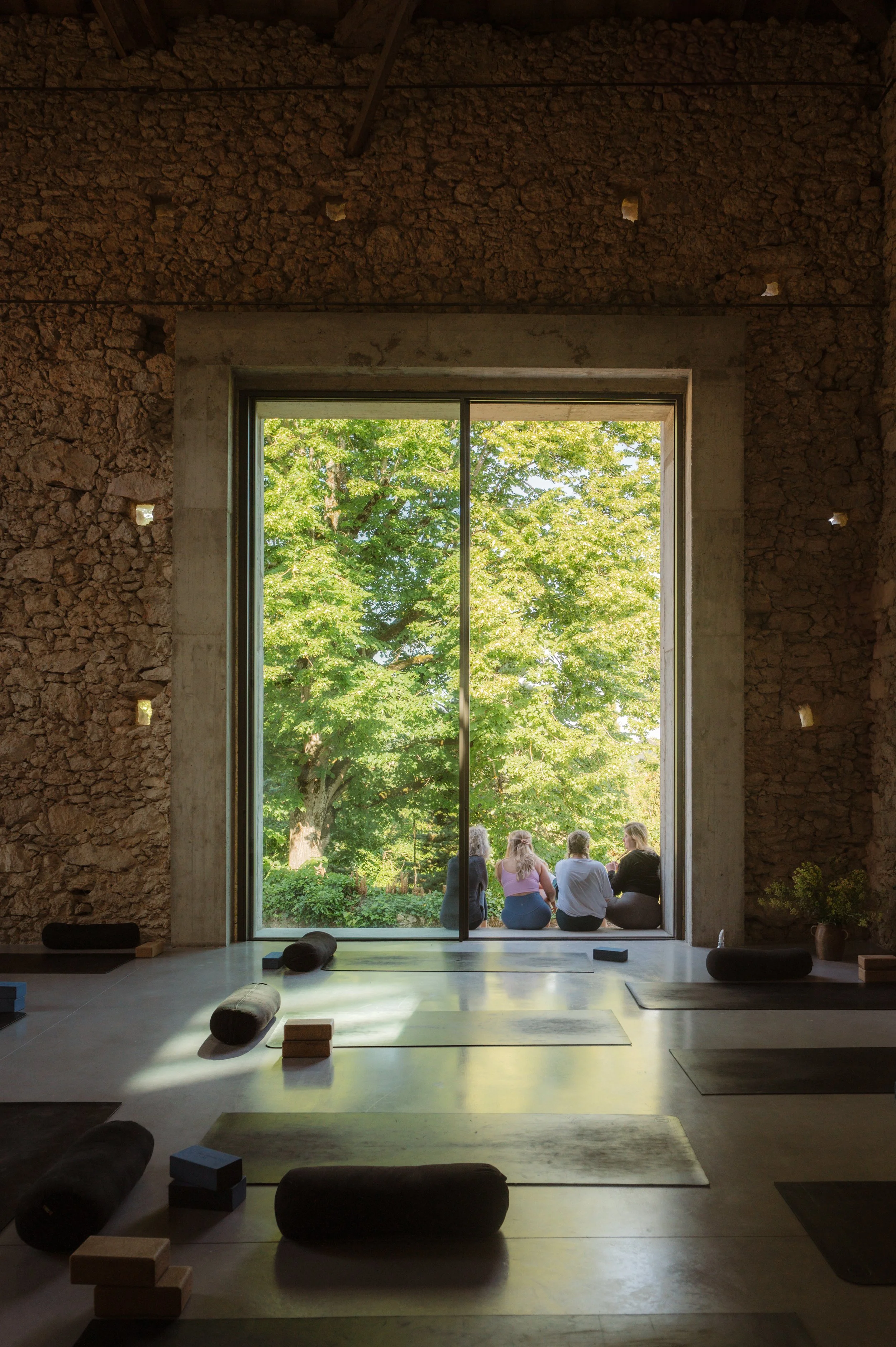 Unstructured time to recharge — float in one of two swimming pools, borrow one of the books from the library, sweat it out in the wood-burning sauna, jump on the trampoline, journal in the garden, or wander the grounds